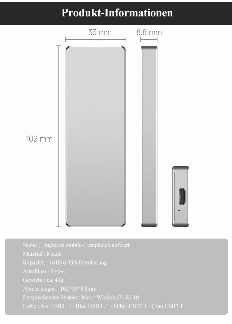 16TB SSD, jeder nur für 18 €!Lesegeschwindigkeit bis zu 550 MB/s, Schreibgeschwindigkeit bis zu 500MB/s.Letzte 3 Tage, 40% Rabatt!